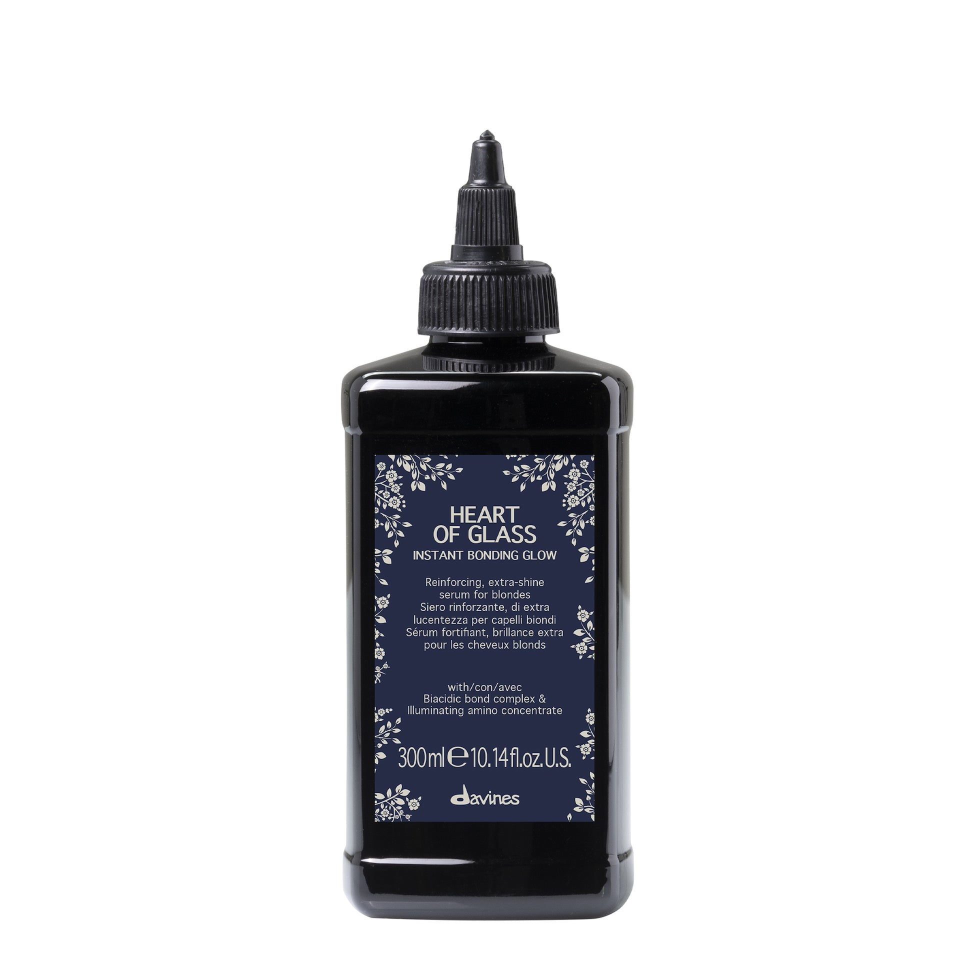 Davines Heart of Glass Instant Bonding Glow sisältää kirkastavaa ja hiuskuitua vahvistavaa amino-konsentraattia, joka antaa ekstrakiillon ja pidentää hiusvärin kestoa. Davinesin patentoima Biacidic Bond -yhdiste korjaa, suojaa ja vahvistaa hiuksen rakennetta. Ravitseva ja pehmentävä baobab-siemenuute on luonnon vaihtoehto silikoneille. Se kosteuttaa ja hoitaa hiusta parantaen sen joustavuutta ja tehden hiukset helpommin käsiteltäviksi.